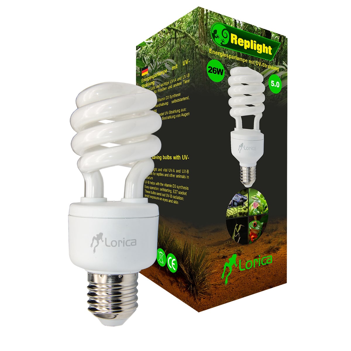 Die Replight Sparlampe UV-B liefert Licht und wichtige UV-B Strahlung für Reptilien und andere Tiere im Terrarium. UV-B hilft der Vitamin D3 Synthese. Die Lampe ist leicht zu handhaben und mit einer E27 Fassung ausgestattet.