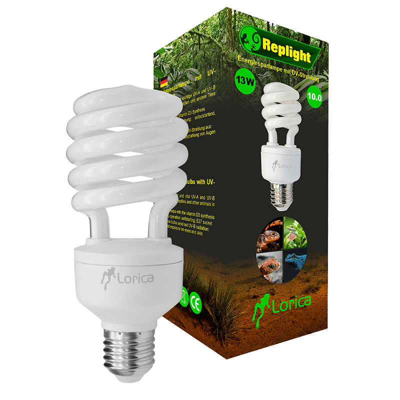 Die Replight Sparlampe UV-B liefert Licht und wichtige UV-B Strahlung für Reptilien und andere Tiere im Terrarium. UV-B hilft der Vitamin D3 Synthese. Die Lampe ist leicht zu handhaben und mit einer E27 Fassung ausgestattet.