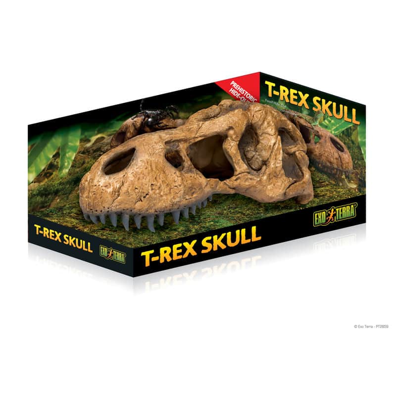Der Exo Terra T-Rex-Schädel sieht sehr realistisch aus und setzt in jedem Terrarium – Wüsten-, Regenwald- oder Aquaterrarium – einen prähistorischen Akzent. Für einen leichten Zugang verfügt dieses fossile Schädelversteck über mehrere Eingänge und es verleiht dem Terrarium eine zusätzliche Dimension.